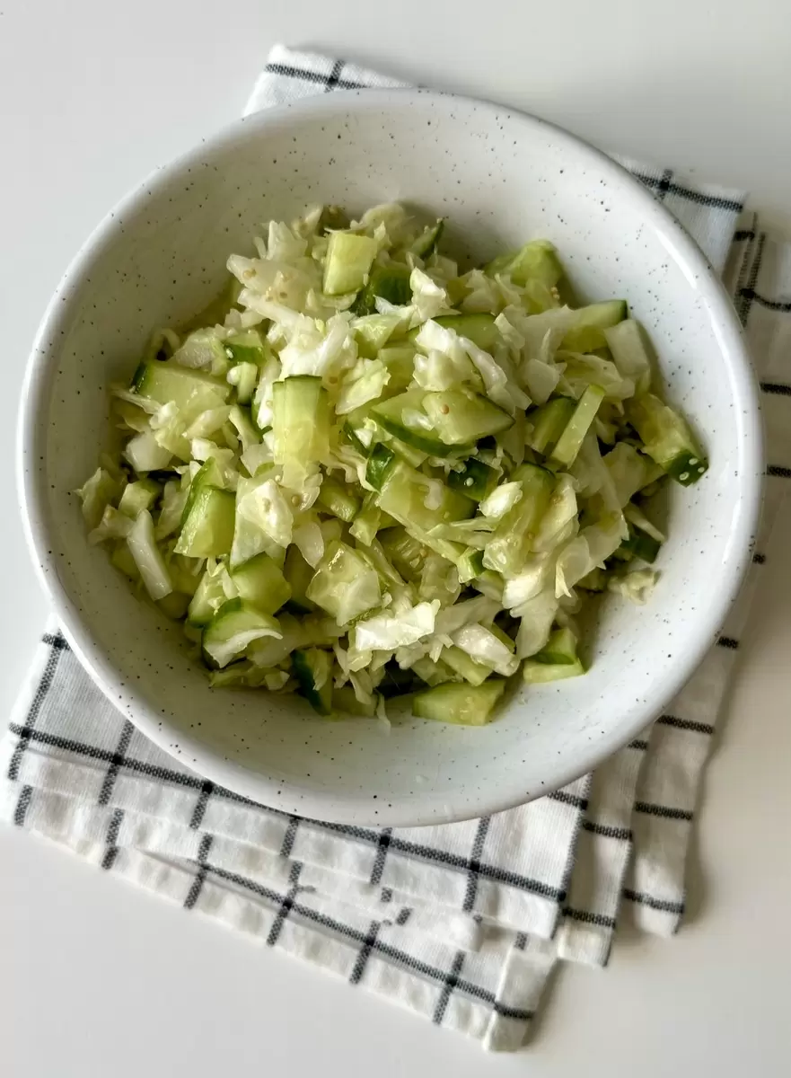 Заправка, основанная на подсолнечном масле, горчице и адыгейской соли, придаёт салату особую глубину и утончённость. Это сочетание сохраняет свежесть капусты и делает её ещё более аппетитной.