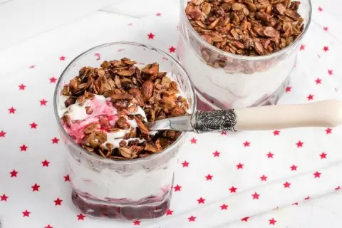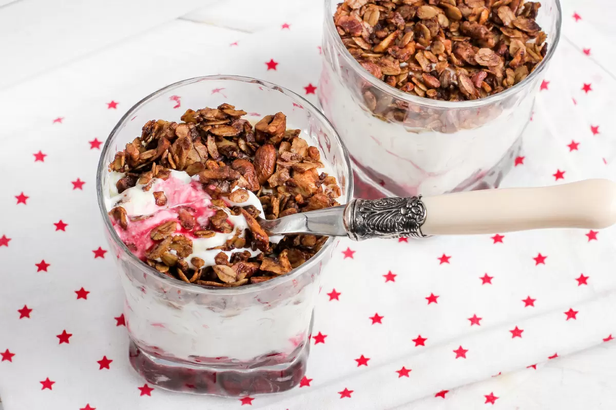 Сегодня в центре внимания - замечательный рецепт, который объединяет в себе густоту греческого йогурта, свежесть вишни и хрустящую шоколадную гранолу. Это простое и быстрое блюдо может стать изюминкой вашего меню.