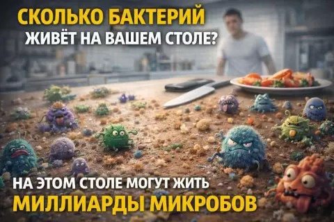 Кухонный стол считается уютным и чистым местом, где мы проводим время, готовим пищу и собираемся с близкими. Однако, если заглянуть под микроскопом, картинка может существенно изменить восприятие. На самом деле, стол становится ареной для настоящего микробиологического мира.