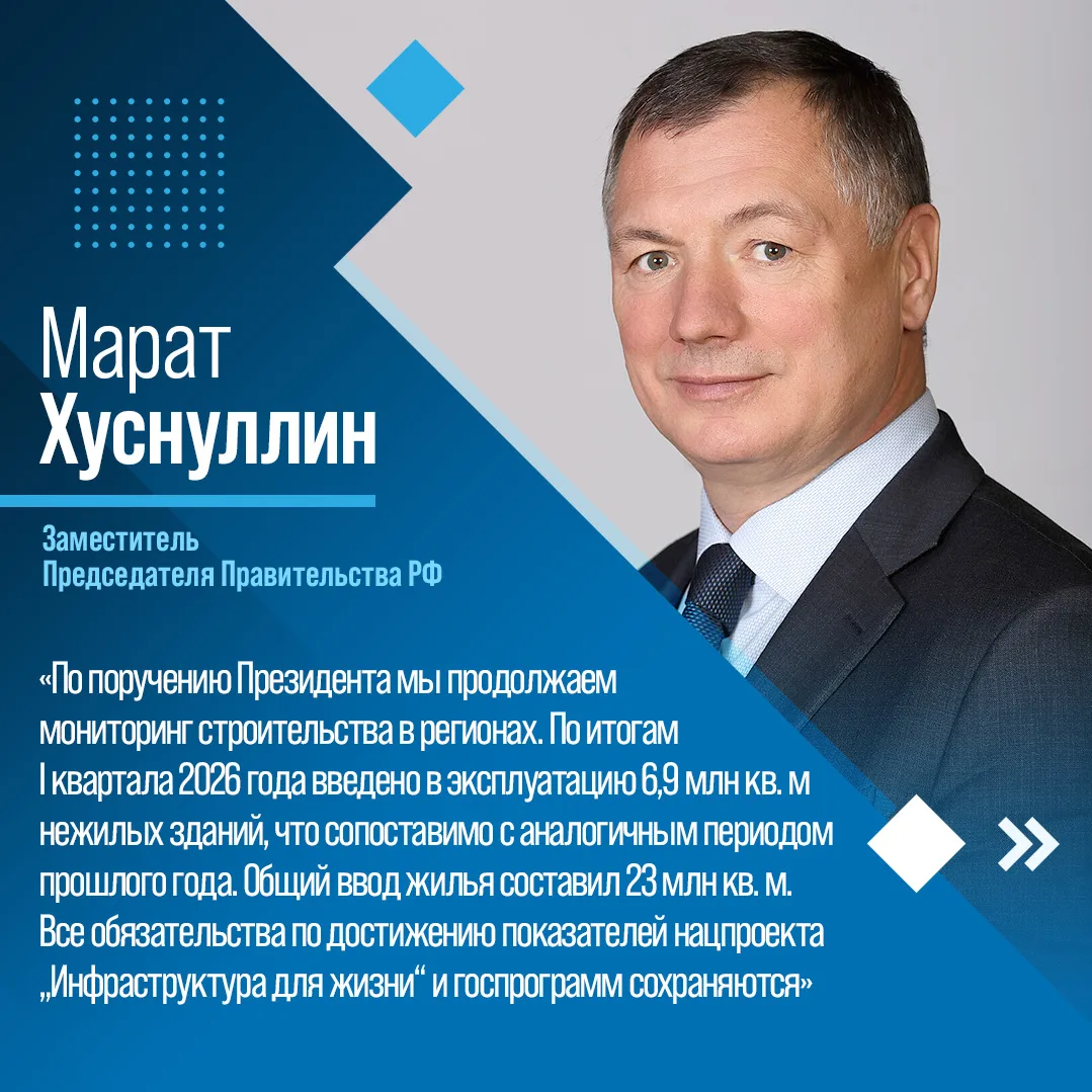 Министр строительства и ЖКХ РФ Ирек Файзуллин доложил о вводе объектов в рамках нацпроекта «Инфраструктура для жизни». В 2026 году завершено благоустройство 533 территорий, а также реализовано 52 проекта – победителя конкурса лучших проектов создания комфортной городской среды. Дополнительно регионы благоустраивают более 900 дворов.