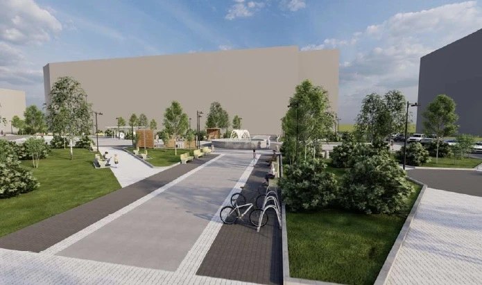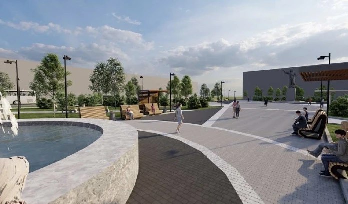 В ходе первого этапа специалисты заменят тротуарную плитку на бетонную различных оттенков для придания пространству уникальности и обозначения зон отдыха, прогулочной территории. Также обустроят пешеходные дорожки и лестничные сходы, установят бордюрный камень, новые лавочки и велопарковку, проведут облицовку чаши фонтана. По контракту работы должны завершить осенью этого года.