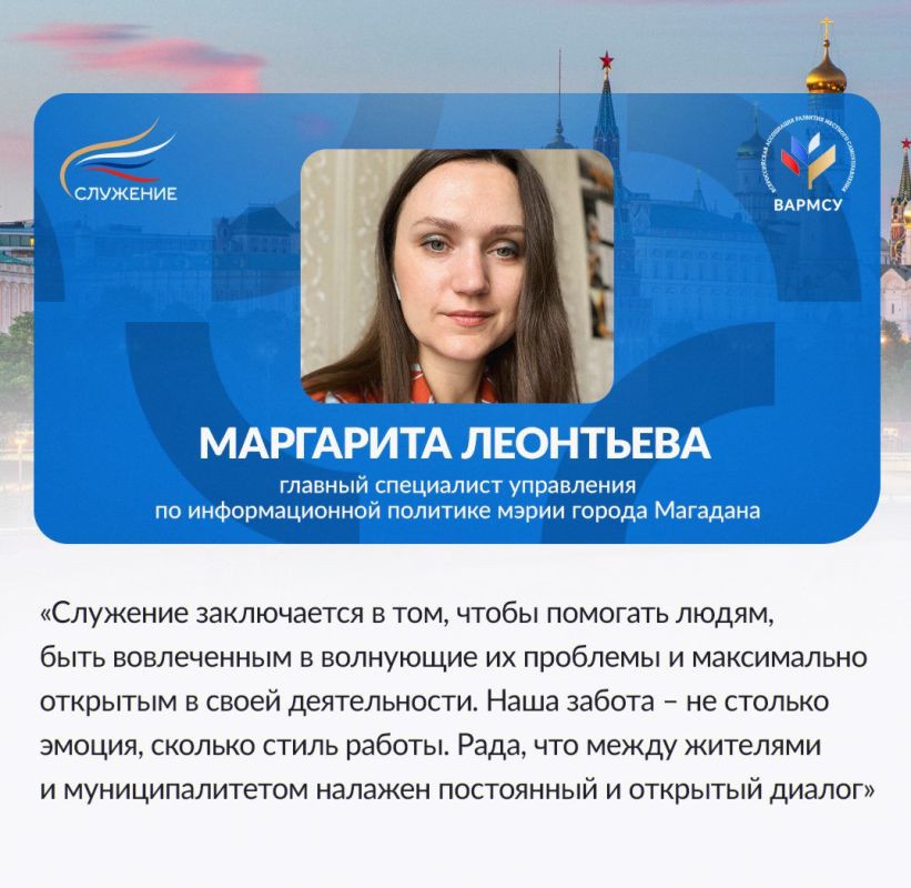 Благодаря ему вся страна может познакомиться с историями тех, чья деятельность является примером самоотверженного труда.Среди участников марафона – и главный специалист управления по информационной политике мэрии города Магадана Маргарита Леонтьева....